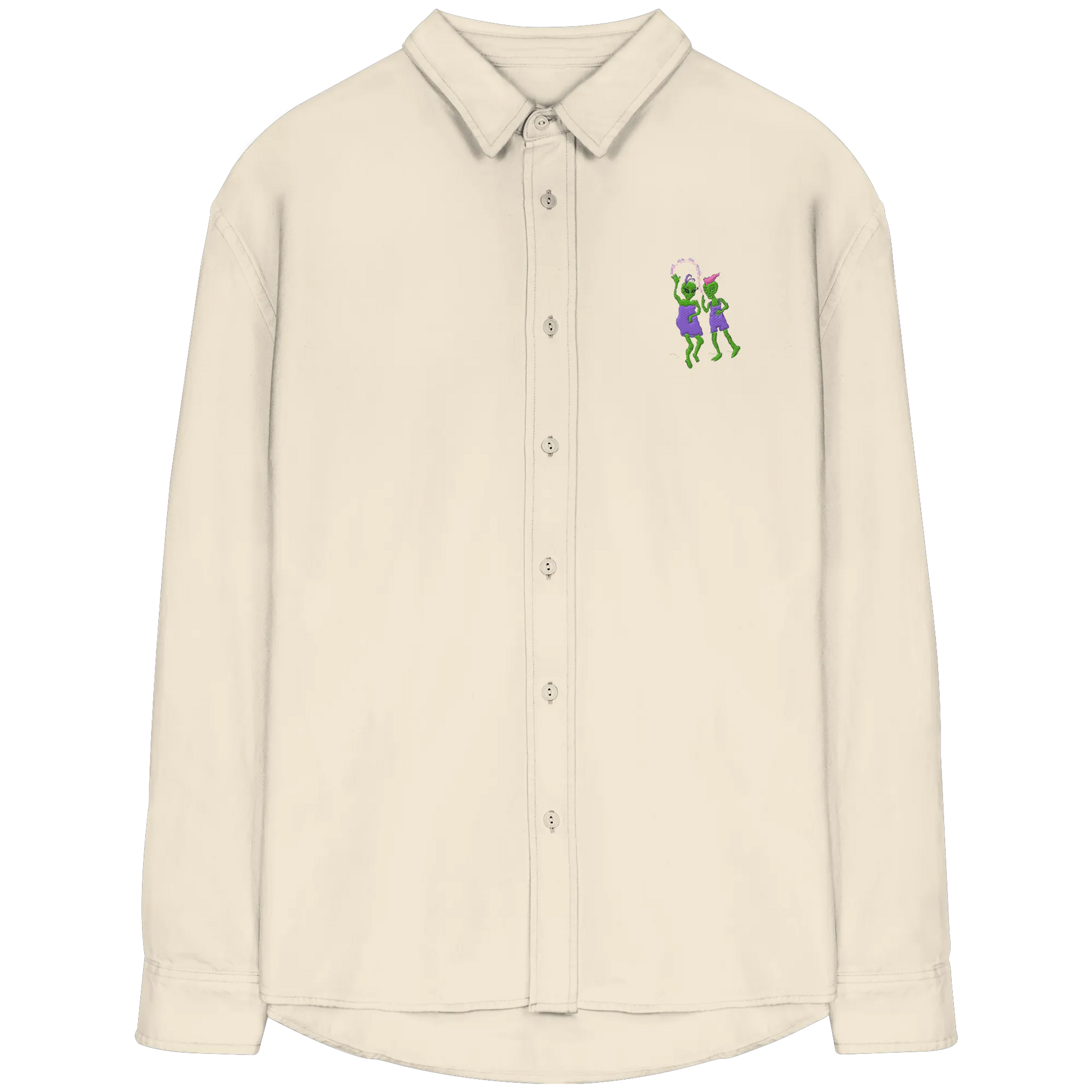 Dancing Aliens Embroidery - Organic Relaxed Button-Up Shirt
