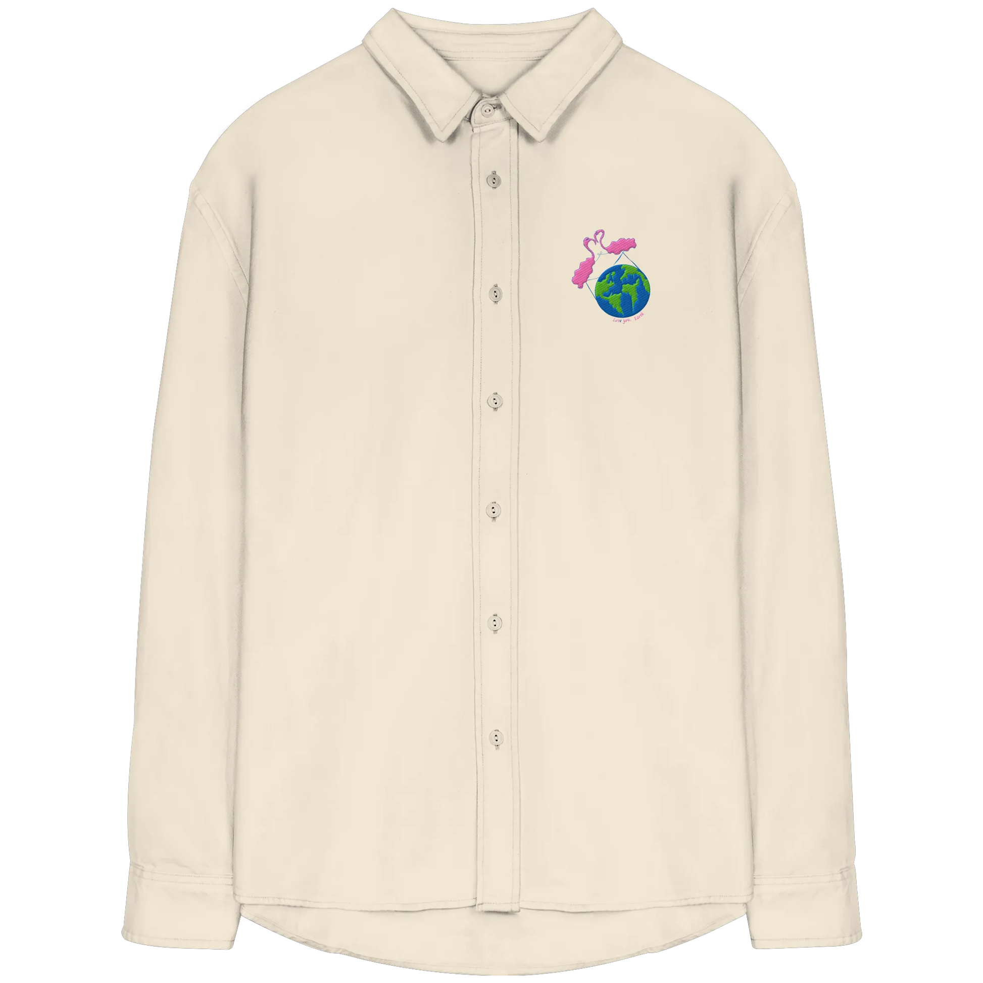Love you Earth/ Embroidery - Organic Relaxed Button-Up Shirt