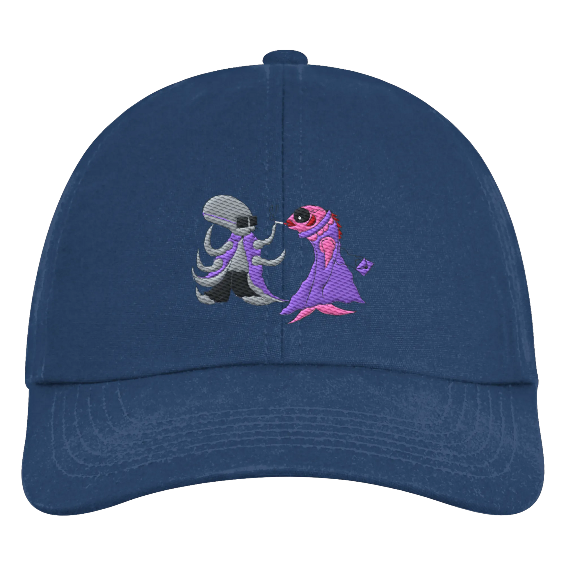 Octo and Fishy embroidery - Organic 6-Panel Cap